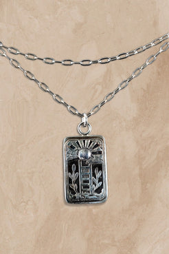 The Tower Pendant embodies the idea of transformation and renewal through challenge. Its textured details and oxidized finish highlight depth, giving the pendant a mystical quality reminiscent of an ancient tarot card. In the Tarot, The Tower signifies sudden change, revelation, and awakening. Though it often represents the breaking down of old structures, it is ultimately a card of liberation—clearing the way for truth, clarity, and rebuilding on stronger foundations. Worn as a talisman, The Tower Pendant serves as a reminder that through disruption comes renewal, and from challenge, transformation.