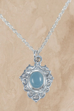Elegant and evocative, this pendant pairs organic artistry with luminous color. Crafted in fine silver, its flowing vine-like frame cradles a brilliant lab-grown tanzanite—a gemstone celebrated for its mesmerizing violet-blue depth and captivating clarity. The intricate openwork design adds an air of romance and refinement, making this pendant a timeless statement piece.